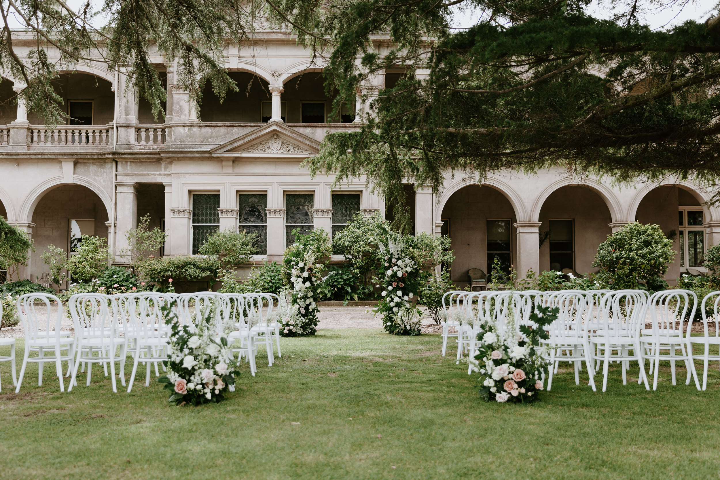 stunning bluestone homestead, encompassing wrap-around verandas and a majestic monkey puzzle tree casting a mesmerizing play of sunlight, Woolbrook provides an outdoor wedding venue for your special day.